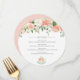 Kaskadande blommor längst upp på denna söta baby shower-meny är i vackra mjuka färger i persika, rosa, vit och celadon. En tekopp längst ner har en bukett blommor som kaskaderar från kanten. Perfekt för att berätta för dina gäster på en te-themed baby shower vad som kommer att finnas på menyn.