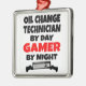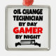 Den här textdesignen innehåller frasen "Oil Change Technician by Day Gamer by Night" och är perfekt för alla tekniker för oljebyte som kärlek spelar video eller dataspel.