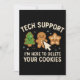 Den här söta och roliga julsupportdesignen för teknikstöd är perfekt för alla som arbetar inom IT eller någon som bara älskar nördhumor. De glada pepparkaksgubbarna, julgranen och markören ger en lekfull twist till frasen "Jag är här för att ta bort dina kakor". Perfekt för julfirande på kontoret, julfirande, programmerare, IT-supportteam och alla som älskar att skratta under den festliga säsongen. En bra present till kollegor, teknikälskare och datorfantaster.