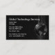 Detta unika och kraftfulla tematiska affärskort är designat med en världsomspännande bakgrund och abstrakt i svart och grått. Konstruktionen skapades för ett datorrelaterat företag eller en datorrelaterad tjänst som är relaterad till säkerhet, kommunikation eller företagstjänster.