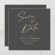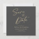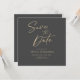 Elegant Charcol Modern Save Datuminbjudan är designad för dem som mode elegans och enkelhet! Lägg märke till din händelse i stil! Trendigets minimalistiska, enkla kvadratfot stil för händelserna i elegant bröllop. Med elegantens skript på framsidan och "Spara datum" i guld. Kombinera med andra objekt från samlingen med minimal Elegant-skript-bröllop. ©EpicSparkle