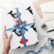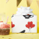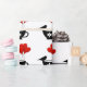 Den vita bilden har tekopp och fink silhuett med röda hjärtballonger.