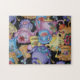 11-tums x 14-tums pussel med en bild av färgstarkt tekopp och tekannor på svart. Se hela Wonderland Puzzle-samlingen i VERKSAMHETEN | Pussel-sektionen.