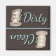 En kylmagnet med roligt som har smutsigt och rent tekopp att representera om diskarna i diskmaskinen är rena eller smutsiga! Färg är brunt, blått och beige. Mycket roligt och trendig!
