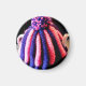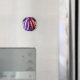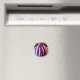 En handstickad vintage rosa och blå tekoppsvärmare på en vit tekanna.