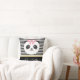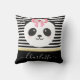 Stam panda med rosa band. Kawaii panda är försedd med rosa kinder, med ett band av rosa blommigt. Svart och vit linjer strimlad bakgrund med gyllene band. Anpassa enkelt och lägg till ditt namn för att anpassa kudden.