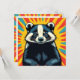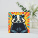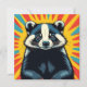 Styrkort med en popkonsbricka på det i en tecknad av popkonsten bok stil och baksidan är tom.