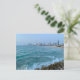 Tittar mot Tel Avivs strand, Israel från Jaffa som visar havet tvättande mot sten.