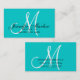 Enkelt Monogram-Telefonkort på en akvblått bakgrund. Att vara mor är lika svårt, om inte svårare, än någon professionell karriär. Varför inte höja den till en professionell med detta elegant monogram affärskort. Lägg till informationen. Kortet kan anpassas, men utformningen får inte kopieras och användas för kommersiella ändamål. Elke Clarke ©2010. Kontaktarkiv för annan färger i bakgrunden.