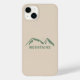 Ett ljusbrunt telefonfodral med berg av grönt och personlig. En fin gåva till älskare om att fånga och utomhus äventyr!