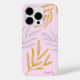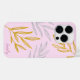 Med handdragna botaniska löv i guld och silver simulerad folie, på rosa bakgrund. Anpassa med namn.