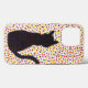 Svart katt (eller en silhuett kattdjur av valfritt färgad). Sprickade punkter i rött, gult och svart som bakgrund.