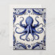 Kustkeramiskt plattor,kursiskt handmålat mönster,Mediterrant nautisk portuguesisk bläckfisk,blått och vitt marint liv,sommarhavssäckfisk,sjöbläckfisk,sjömatportugal i strandhus,autentisk klassisk målning,vintage tentakles antique kusten,folkkonst spansk mexican talavera,monokromatisk dekorativ djurart