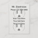 affärskort för Perfekt för en elektriker-designad med en grafisk bild av ett duplex-eluttag som är lätt tryckt i bakgrunden så att din affärsinformation framträder. Designad för en elektriker med tillstånd från oberoende eller en elektriker med personalflotta. Presenteras i affärskort med större format som är bredare än storleka som standard i det här lodrät.