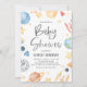 Familjen inbjudan och vänner till ditt evenemang med inbjudan till den här temat för babyduschen. Den har vattenfärgade illustrationer av måne, planeter, raketer och stjärnor. Den här inbjudan till rymdtemat är perfekt för pojkbabyduschar. Anpassa genom att lägga till namn, datum, tid, plats och annan information.