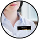 Designmallen Classy namn bricka med guld färgad design inslag som lägger till en elegant som ser ut att ge med ansikte till ansikte besöker ett professionell utseende. Designad för Realtor, Broker eller Title Company.