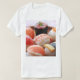 The cuteness of Temari Sushi is captured on a T-shirt. The chicken topping and round shape create a peaceful, modern Japanese style.