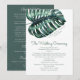 En jätte tropisk monstera-blad på en chic bröllopsprogrammall perfekt för ett modernt destinationbröllop, strandbröllop eller grönt tropiskt ö-tema bröllop.
