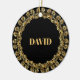 Template, ready to personalize, gold-colored text with ornate gold circular frame on black background.