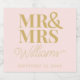 Guld och den rosan Template Wedding favor Mr & Mrs Namn Date Cute and Classy Modern Minimalist Vin och Champagne Label gör dina gäster till de mest skuldsatta bröllopsförmånerna. Anpassa mallen med ditt efternamn och datum för bröllop, förlovning eller årsdag.