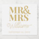Guld och White Template Wedding Favor Mr & Mrs Namn Date Cute and Classy Modern Minimalist Vin and Champagne Label gör dina gäster till det mest trevliga bröllopet. Anpassa mallen med ditt efternamn och datum för bröllop, förlovning eller årsdag.