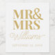 Guld och White Template Wedding Favor Mr & Mrs Namn Date Cute and Classy Modern Minimalist Vin and Champagne Label gör dina gäster till det mest trevliga bröllopet. Anpassa mallen med ditt efternamn och datum för bröllop, förlovning eller årsdag.