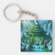 Keychain of a Chinese temple castle made entirely of magical green jade. Clean blue waters encircle the structure while silent jade sentinels flank the way to the castle's crystal gates. Legend has it that within the teeming jungles of the country lay hidden the castle of the benevolent, yet enigmatic, Empress Liáo Yù Yù and her mystical throne of glowing jade. Adventurers and treasure seekers, dignitaries and holy men, beggars and businessmen, had all come from the many corners of the world trying their luck to find this mythical place, but only the truly worthy were successful. Their quest was to sit on the glowing throne of jade that once belonged to the Empress, for it is said that it cured you of all your most painful and deathly ailments. To some, the throne even granted eternal life, but, woe to those whose intentions were selfish, for just as they sat on the ancient seat of power, they were never seen again... This artwork was created with ImageFX and upscaled with Leonardo.ai. Additional editing was done offline by me.