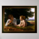 Temptation c1880 från Fransk Painter William Bouguereau (1825-1905); från NeoClassic and Academic Periods, som skapat moderna tolkningar av klassisk subjekt baserat på mytologiska teman. En vacker och förtjusande målning av ett ungt dam och ett flicka med ungefär tre års avslappning på marken, med det unga dam nedlagt och baby sitta uppåt i en damm med vatten liljor i den, i ett stort terräng med många träd bakom sig.