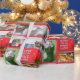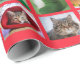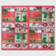 Tio kattfoton på inslagning pappert, var och en visas fyra gånger, placerade i en kristlig kollage med rött gräns. Glad helg och till hela bran.
