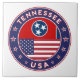 Tennessee-bricka med flagga Tennessee och flagga i USA färg, rundad form. Tennessee-emblem. Säte av Tennessee. Samling i USA Stater.