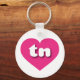 Den här nyckelkedjan har ett skarpt och dynamiskt shock rosa-hjärta som innehåller det feta, rundade, vita nedre fodral-brev tn, en lekfull förkortning för Tennessee, det frivilliga tillståndet.