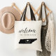 Välkomna gäster till Tennessee bröllop med denna chic och moderna personlig tote bags. Designen är välkommen i ett handskrivet kalligrafskript, med initialer gått med av ett hjärta, tillsammans med ditt bröllop-datum, i ett svart silhuette karta i Tennessee-staten. Anpassa till en viss stad eller plats i Tennessee namn om så önskas.