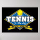 Logotypen för triangelsport i Blått och guld med tennis boll med tennis är min livstext! Born för att spela, destinerad för att vinna gultens banderoll över grund! Underbara tennis poster för spelare och fläkt!