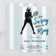 Celebrate her finding her perfect match with this cute blue and white striped Last Swing Before the Ring tennis bachelorette party invitation. Personalize it with your event details. Great for sports fans.