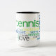 Tennis är kärlek, vänner, foes, racket, bollar, domstolen, det netto, och slår. Dela din kärlek av tennis med denna mugg för tennisnyckelord som skapas av Tennisessities.