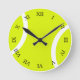 En gult tennis boll med svarta romerska siffror för en väggklocka
