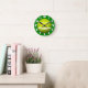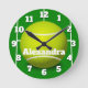 Lägg till ditt namn eller ord till den här tennis-klockan. Roligt- och sportennis boll-klocka är underbar för idrottsentusiasten eller lagspelaren. Har en gult med fuzzy-look-tennis boll, med bakgrunden till en grönt-turfdesign och klocknummer i vitt. Underbaren för tonårsturnens lagmedlem eller bara en domstolsentusiaster för singlar eller dubblor matcher.
