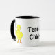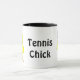En gult chick med tennisracket och boll är en rolig presentdesign för tennisinstruktörer och tennisspelare. Text kan ändras