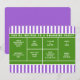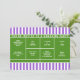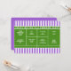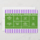 Kreativa tennisinspirerade fest- eller evenemangsinbjudningar med en tennisplan på en lila randig bakgrund.