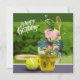 Tennis födelsedag med öl och bollracket på grönt