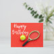 Tennis Glad födelsedag med racket och boll på rött Vykort