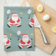 Creative tennis holiday towel for the kitchen or courtside or unique Christmas gift for tennis lover featuring funny Santa Claus playing tennis.
