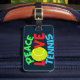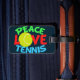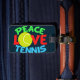 Jag kärlek spelar tennis. En söt julklapp till tennis-spelare med gult tennis boll som O i Kärlek. Fred och tennis skriven i blått och grönt.