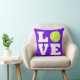 Tennis Kärlek Cute Square Dekorativ kudde: ord "KÄRLEK", som är skrivet i fet, vitt, fyrkantigt brev med tennis boll i ställe i O. Gör en underbar dekoration för tennisspelare, tränare och fläkt! Klicka på knappen "Anpassa" om du vill ändra bakgrunden till färg, som för närvarande inte har någon lila.