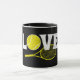 Retro stil grunge "Kärlek"-textdesign med gult tennis boll och racket dekoration