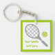 Tennis racket och boll-nyckelkedjan visar grått racket, en grönt tennis boll och din text på vit bakgrund med grönt gräns. Anpassa den och lägg till texten "Best tennis Player" eller monogram, namn eller ditt meddelande. Perfektens gåva till tennisspelaren eller tennis älskare i ditt liv. Lite inslag från vectorportal.com.