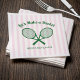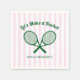 Slå till på planen med denna coola Låt oss Göra ett Raserat tennis sängkammarparty servett. Anpassa den med dina evenemangsuppgifter. Bra för sportfans, idrottare och spelare.