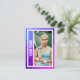 Minneshögtidlighålla resultatet av dina tennis-tournament-dubblor med det här anpassningsbar-handelskortet. Ladda upp dina egna foton från tennis-spelare längst fram och bakåt och redigera texten för att ange ditt namn och även ditt dubbla tennis-team namn, t.ex. Simpson/Johnson. Du kan också redigera texten för att ange namn i din tennis-turnering, samt din vinst/förlust-post och vilket ställe du avslutat. Kortets framsida i gräns är en strålande rosa, lila. Baksidan av kortet har en blå tennis-bakgrund med tennis bollar och tennis racket.