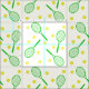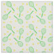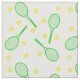 Den här sportvävnaden har en upprepande mönster av tennisracketar i grönt och tennis bollar i gult mot bakgrund av blekens gult.