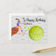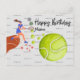 Tennis kvinna spelare spelar tennis med massor av tennisbollar på text grafik för Födelsedagskort